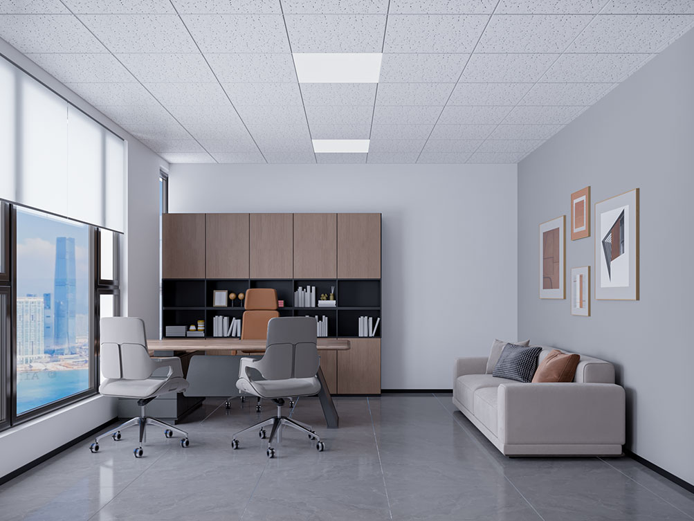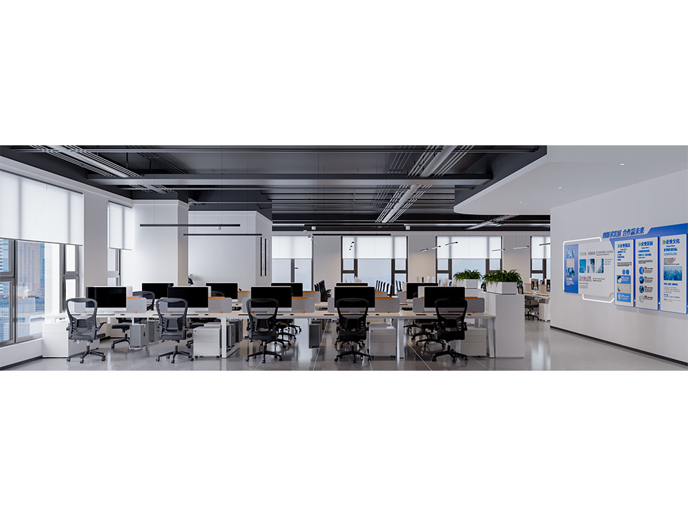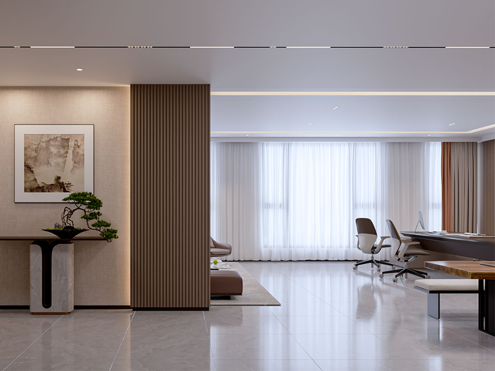 山東邦正機(jī)械設(shè)備有限公司裝修效果以 “工業(yè)基因 + 現(xiàn)代辦公” 為核心,前臺(tái)接待區(qū)用深灰石材背景墻搭配金屬 LOGO 與機(jī)械零件擺件,傳遞專業(yè)硬核的品牌形象;該辦公室裝修是采用模塊化工位設(shè)計(jì),開(kāi)放區(qū)域以淺色調(diào)與機(jī)械主題裝飾畫(huà)營(yíng)造高效氛圍,獨(dú)立辦公室則通過(guò)木飾面與人體工學(xué)家具提升舒適感;展示區(qū)設(shè)抬高式產(chǎn)品陳列空間與軌道射燈,搭配電子屏及榮譽(yù)展示墻,直觀呈現(xiàn)企業(yè)實(shí)力;配套的茶水間與不同規(guī)格會(huì)議室,兼顧員工休閑與商務(wù)需求,整體實(shí)現(xiàn)品牌屬性、實(shí)用功能與舒適體驗(yàn)的統(tǒng)一。