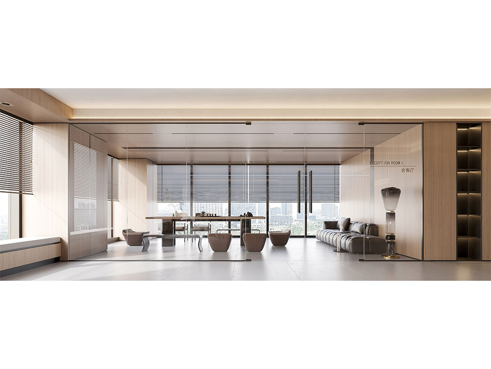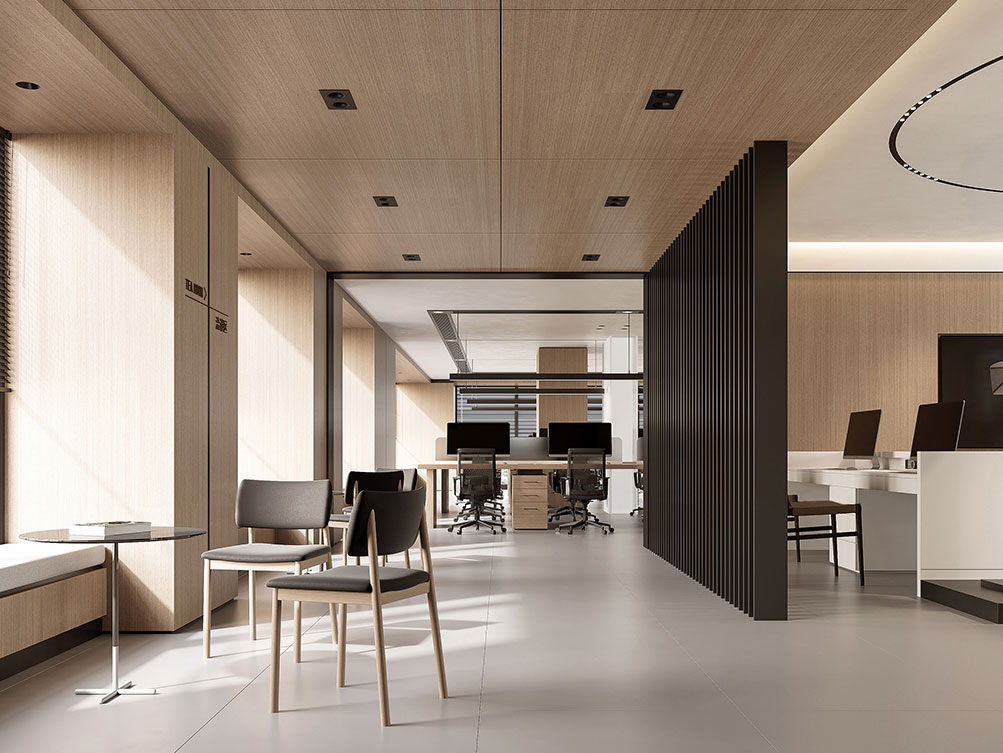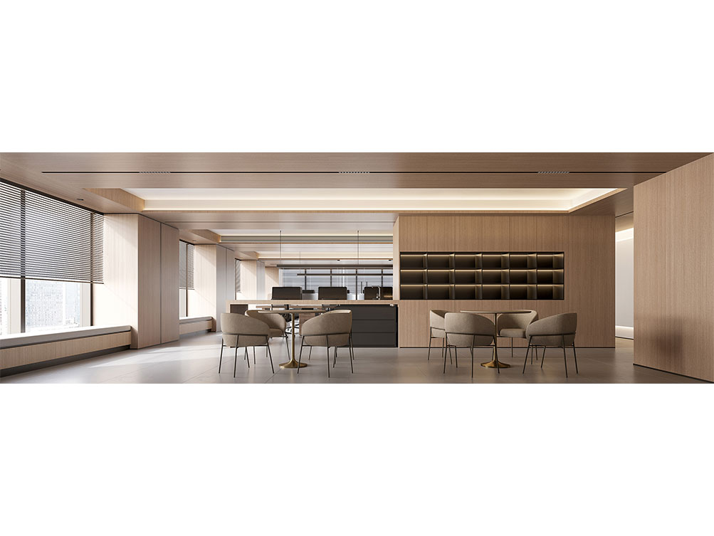 濟(jì)南奧克斯中心辦公室以溫潤(rùn)木調(diào)為主線,搭配淺灰地面與嵌入式燈光,打造出濟(jì)南辦公室裝修中標(biāo)志性的簡(jiǎn)奢氛圍。開(kāi)放式長(zhǎng)桌適配團(tuán)隊(duì)協(xié)作,玻璃隔斷既保障通透又劃分功能區(qū),嵌入式柜體兼顧收納與美學(xué),結(jié)合柔光設(shè)計(jì),契合濟(jì)南商務(wù)空間 “實(shí)用 + 質(zhì)感” 的裝修需求,是濟(jì)南辦公室裝修中現(xiàn)代高效風(fēng)的典型呈現(xiàn)。